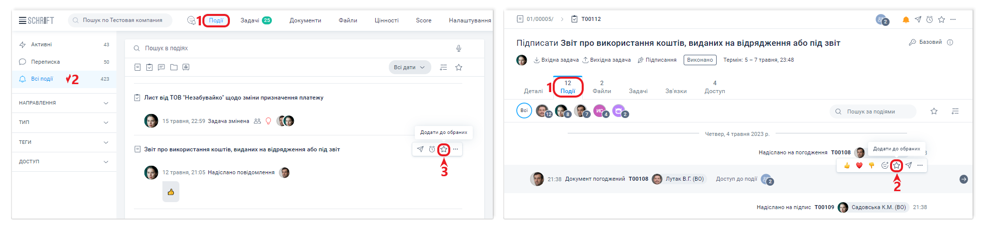 Використання фільтра Обрані дає змогу організувати ефективну роботу з вхідною інформацією. Подію можна відзначити, як Обрану. Відображення таких подій, доступне в один клік за фільтром Обрані.