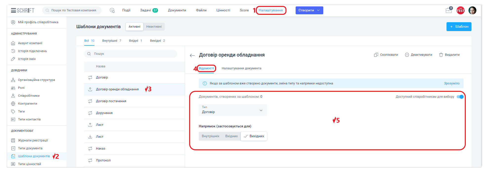 Шаблон документа стане доступним для використання всіма співробітниками після того, як буде ввімкнено ознаку доступності шаблону до його використання.