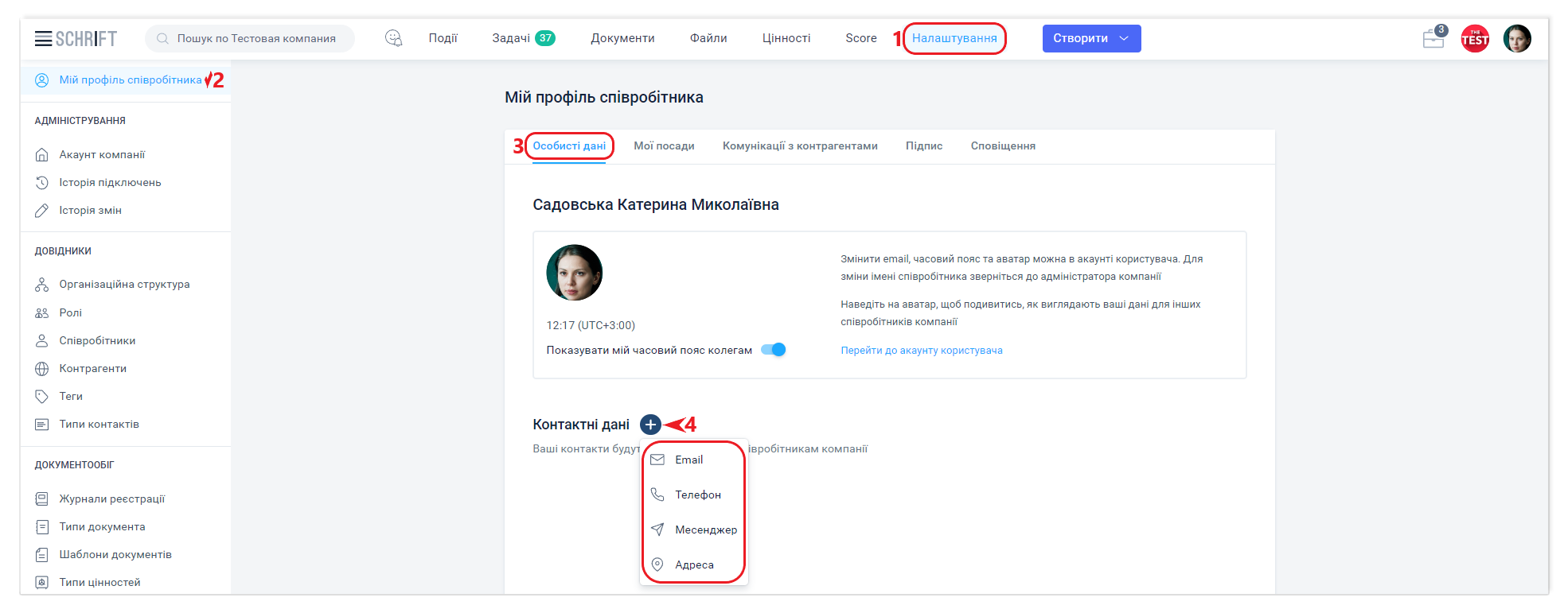 Додавання своїх контактних даних допоможе співробітникам компанії зв'язатися з вами поза системою за необхідності.