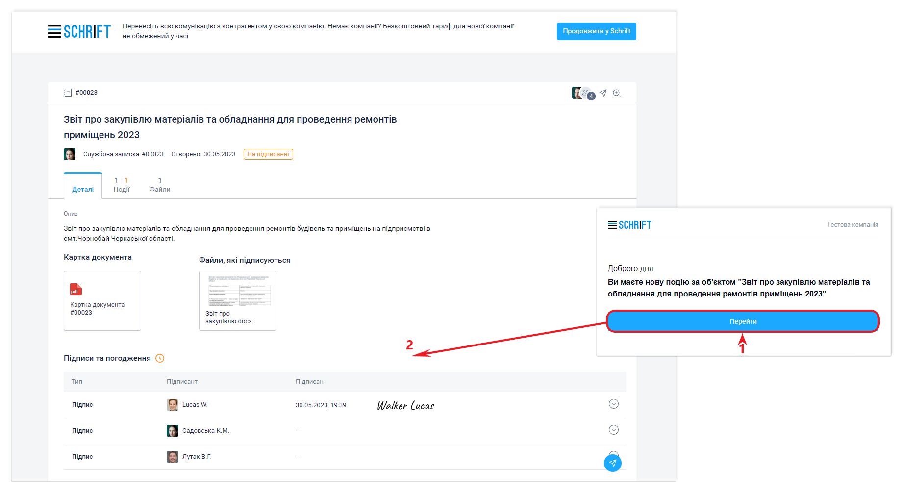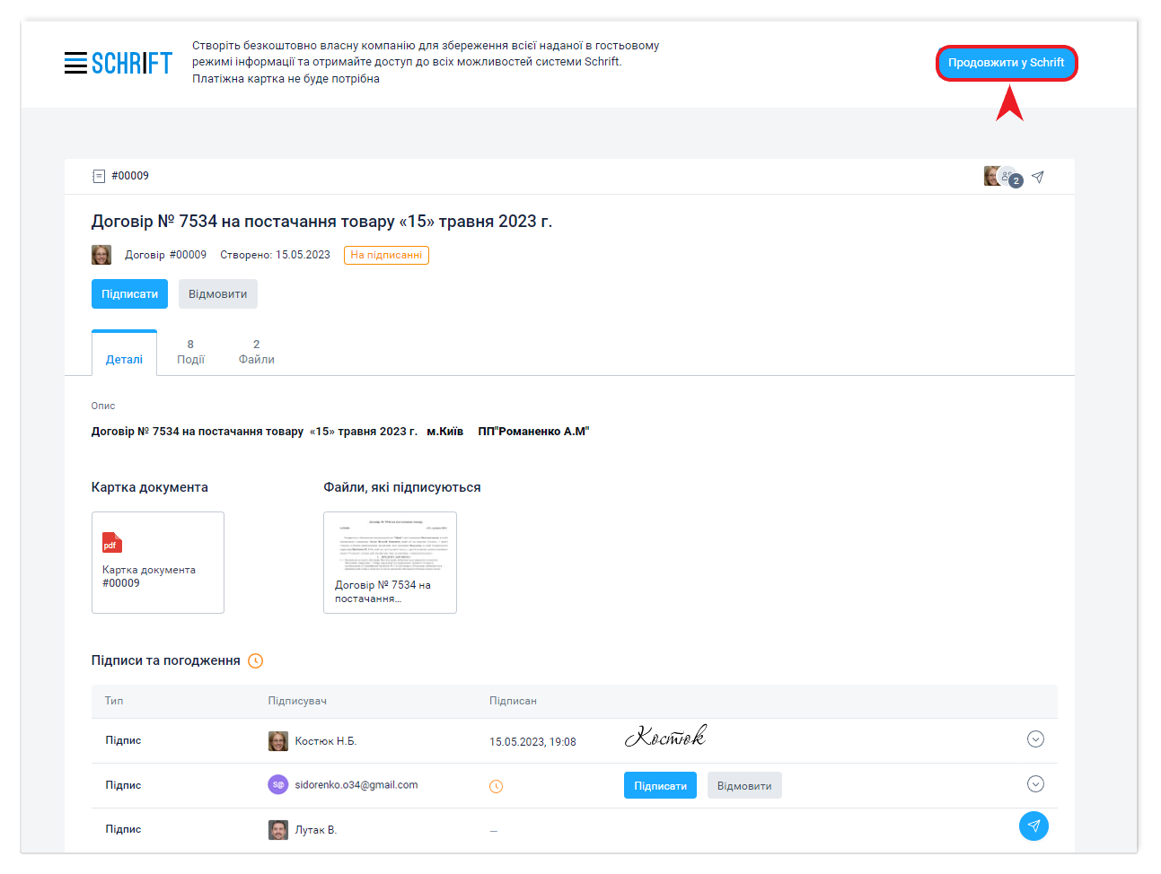 Підписання документа в гостьовому інтерфейсу