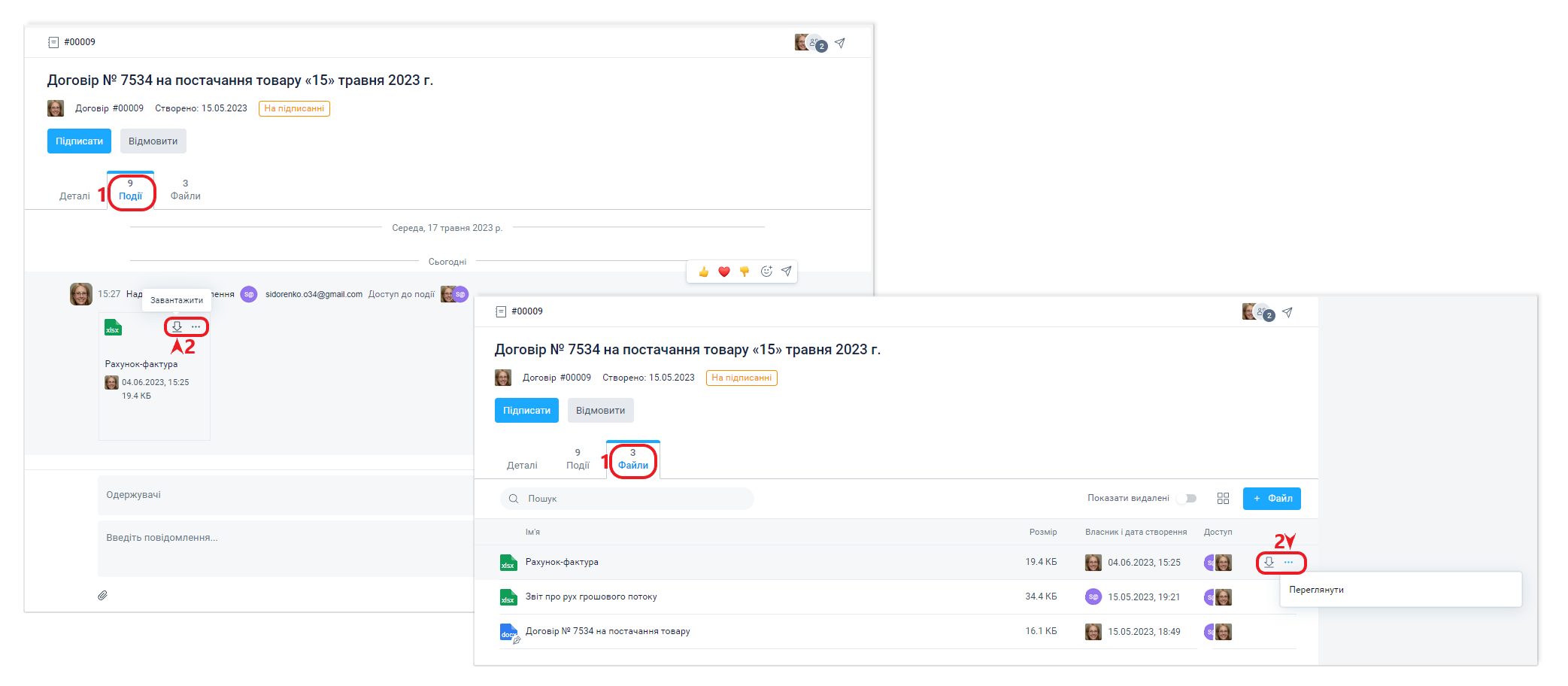 Контрагенту буде доступне скачування та перегляд файлів безпосередньо з гостьового інтерфейсу.