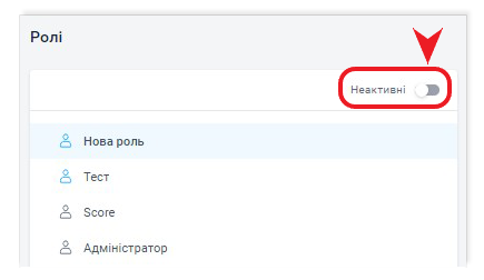 Деактивовані ролі будуть приховані зі списку ролей, але їх можна побачити, увімкнувши фільтр Неактивні.