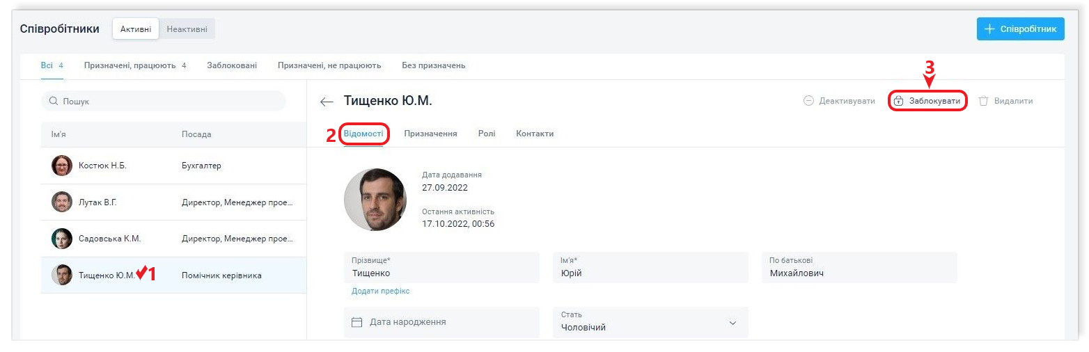Блокування співробітника