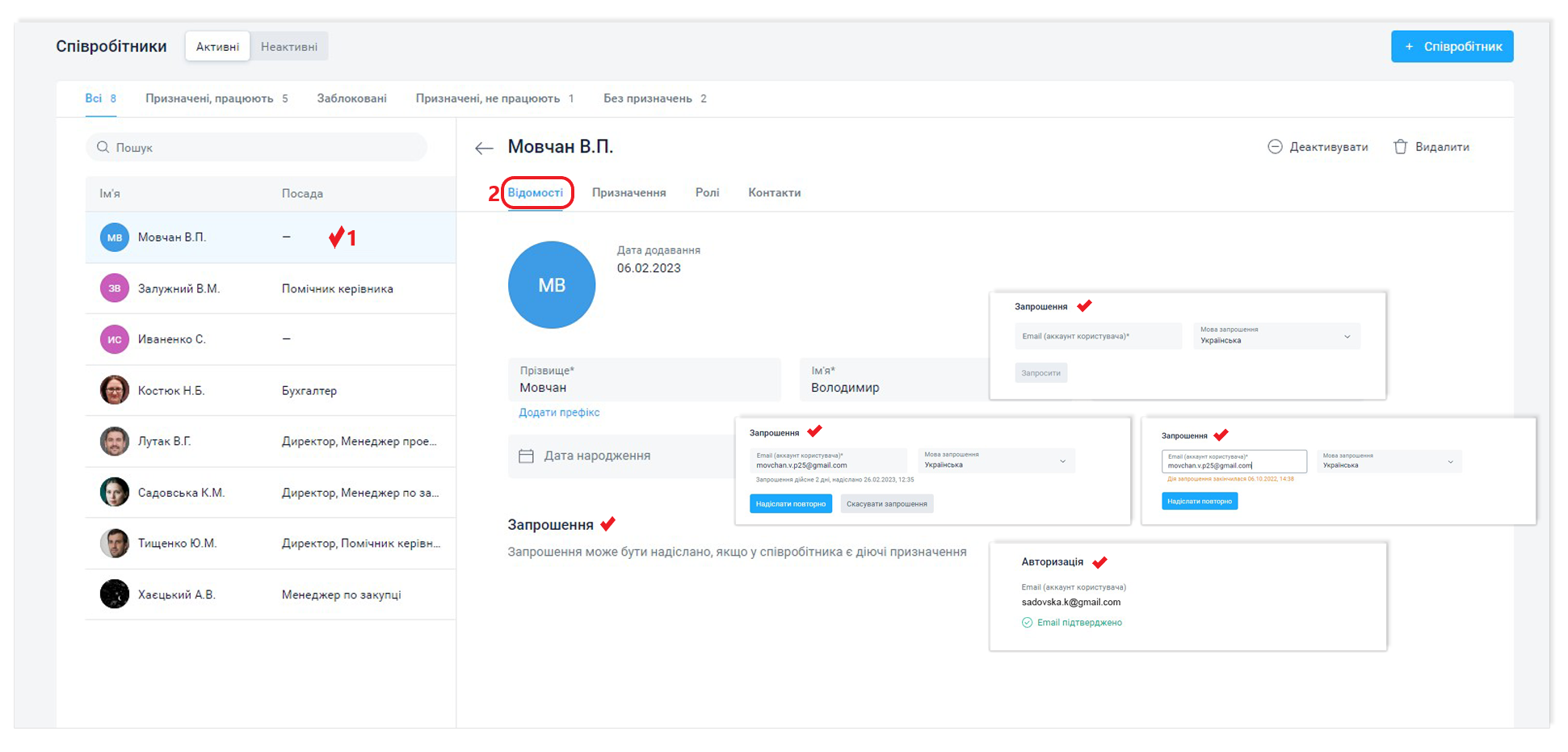 Додавання та запрошення співробітника