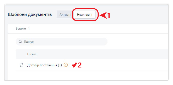 Якщо шаблон документа став уже неактуальним, але оскільки за ним уже є створені документи, видалення такого шаблону недоступне, такий шаблон документа можна деактивувати.