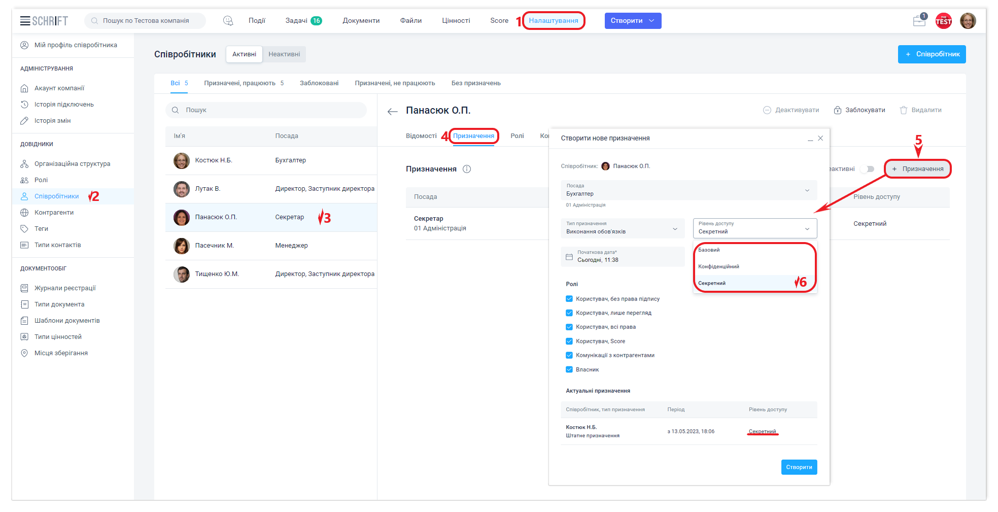 Докладніше про базові елементи системи та поняття Користувач, Співробітник, Посада, Призначення та Компанія дивіться у статті Адміністрування компанії.