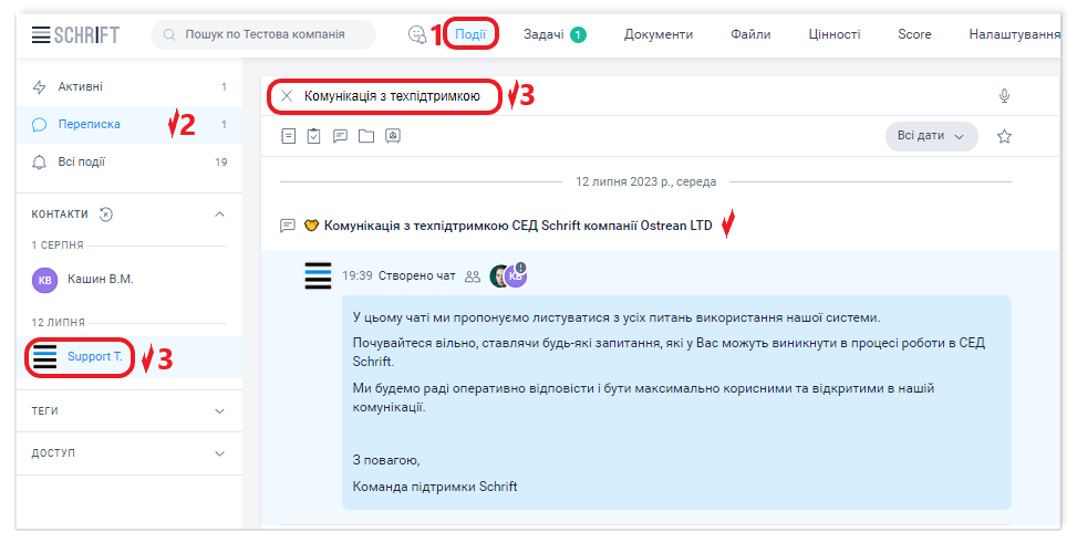 Швидко знайти чат із техпідтримкою ви можете навіть у великому потоці вашої переписки, відфільтрувавши переписку за контактом Support або скориставшись швидким пошуком по розділу.