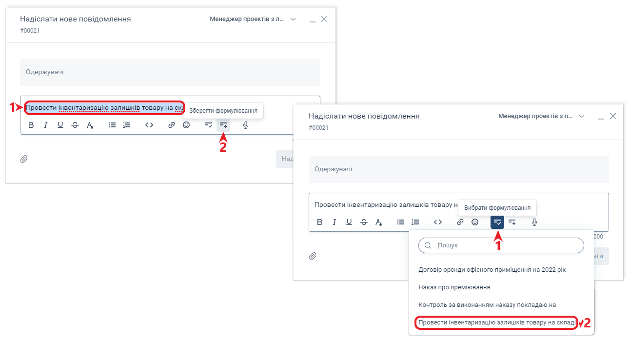 Для збереження такого формулювання достатньо виділити його в тексті та натиснути іконку "Зберегти формулювання".