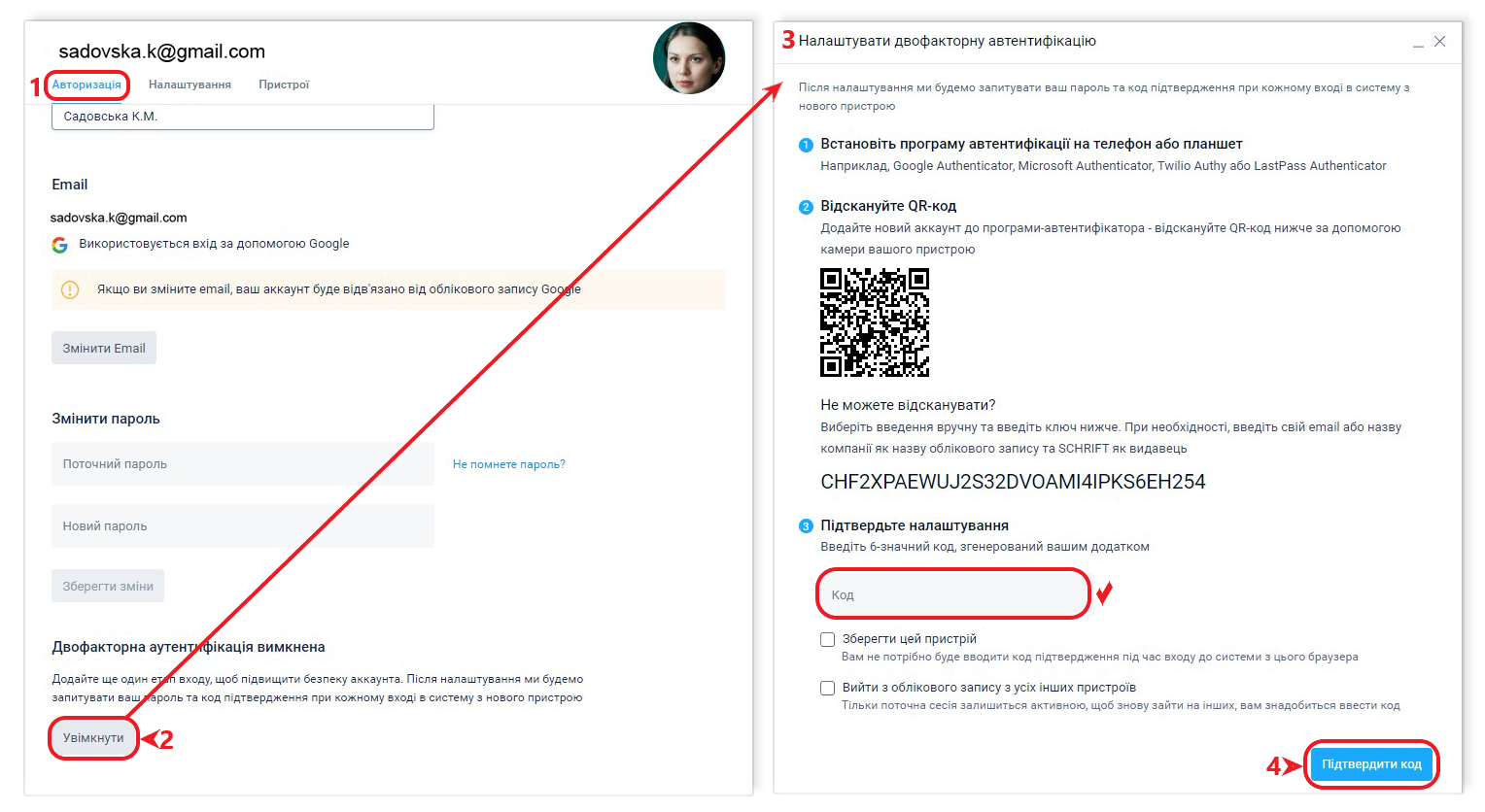 Як підключити двофакторну автентифікацію